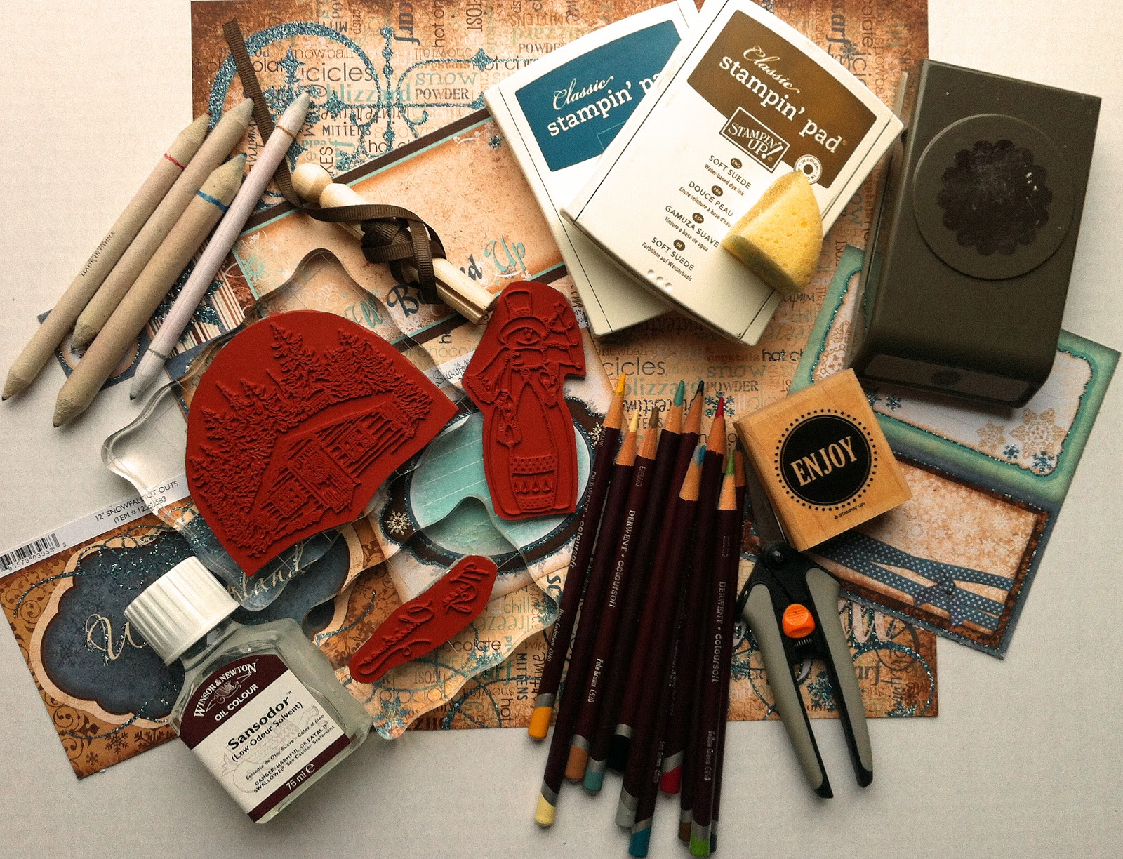 - a beautiful Katzelkraft stamp set (www.katzelkraft.fr), Derwent Colorsoft Pencils, Stampin' Up stamp ("Enjoy"), punch and ink.